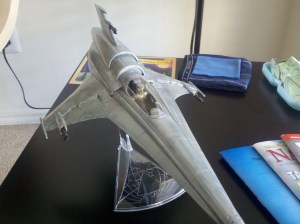 It has been a very long time since I built any models, but now I need to do something to fill my weekends. Behold the 1/35 scale Moebius Models Battlestar Galactica Viper Mk VII. This picture was taken just before the application of decals. Generally an easy build and paint job though I will do better next time.