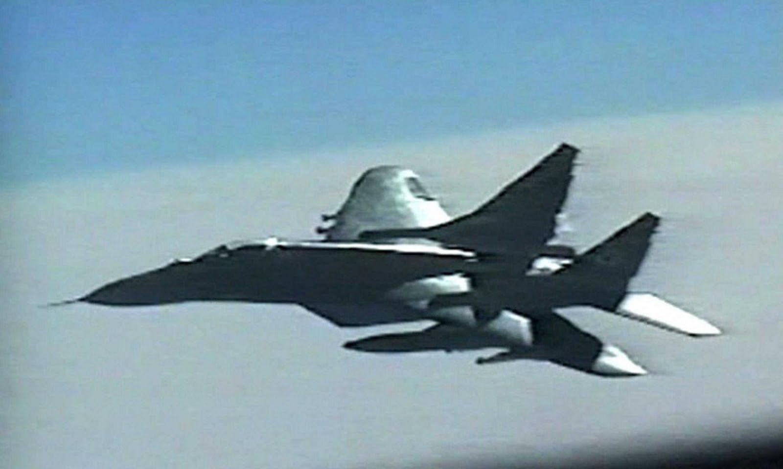 NorK Mig-29’s are rarely seen in public. The first (and maybe most famous occasion) was in 2003 when a NorK MiG-29 intercepted a USAF RC-135 over the Sea of Japan. The aircraft involved appeared to be a 9.13 armed with a drop tanks and what looks like R-60 (NATO: Aa-8 Aphid) short-range air-to-air missiles.