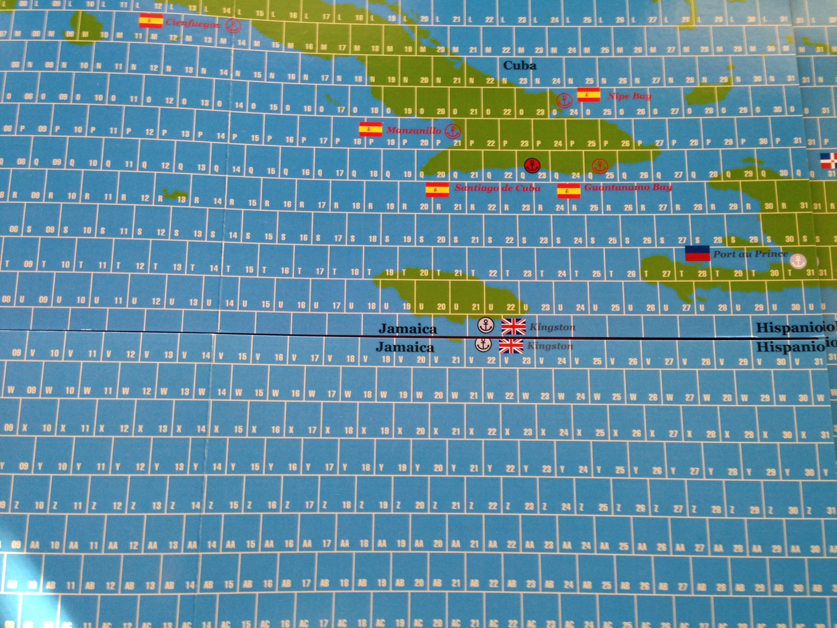 There is a version of Murphy’s Laws of Combat which states, “All battles are fought at the junction of two or more map sheets.” Remember the Maine apparently has taken this adage to heart and placed several names and locations at the junction of the map sheets. I find this very unattractive as the maps already don’t line up quite right and require a bit of overlap. At first I thought the spreading of ports or names across multiple sheets was to facilitate their use in smaller scenarios but looking through the scenario book this does not appear to be the case. Indeed, based on the Operational Scenarios presented, one could get away with a two-sheet map running geographically from the northwest to the southeast covering the area from Miami to Bridgetown. Of course, this would not be in keeping with the usual “up is North” approach in GWAS mapping but I have to wonder what the impact on the cost of the game might have been.
