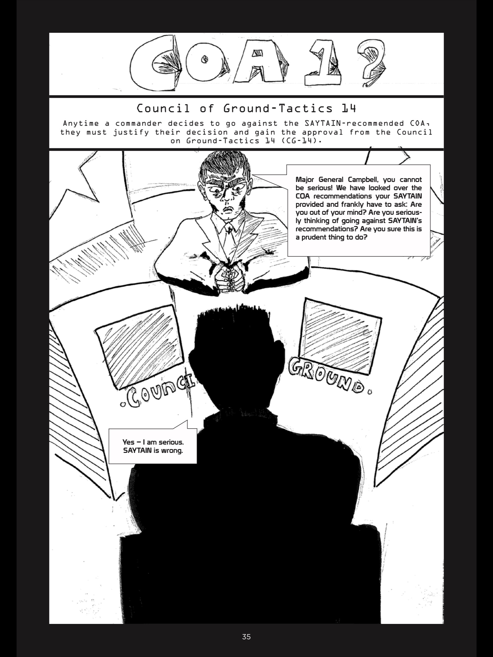 I’ll point out that focusing on technology in future warfare works, to a point. Alas, a weapon generational approach to describing the differences does not account for the human factor. Here I’ll direct your attention to the excellent Destinations Unknown series of (serious) web comics from the Marine Corps University Press. Volume 1 includes the story “A Matter of Instinct.” It is 2070 and the US Marines are sent in to oppose an invasion of Taiwan by China. The Department of War (replacement of DoD) has mandated the use of an artificial intelligence network, SAYTAIN, to determine the proper course of action (COA). Read the story to find out what happens, it’s seriously good!