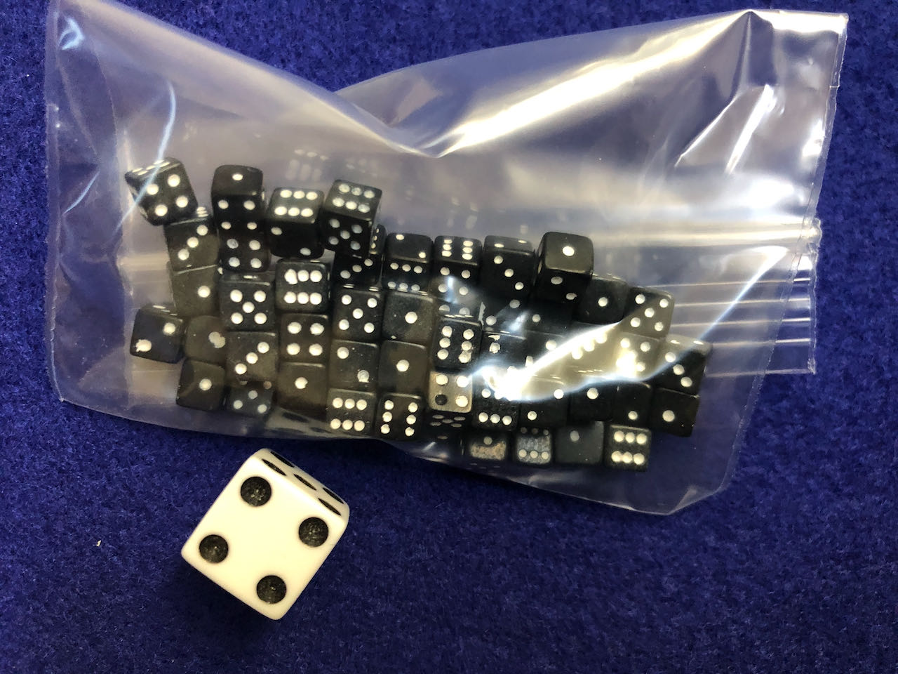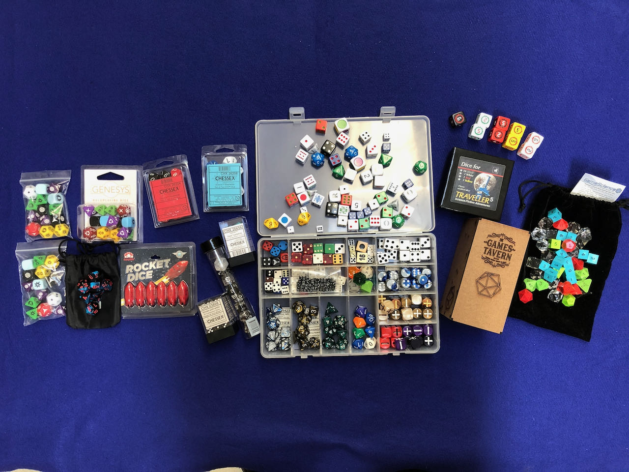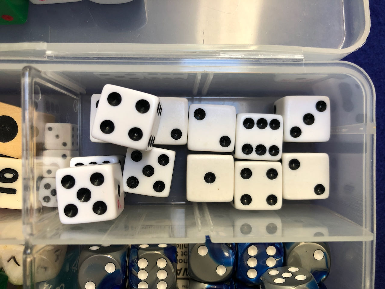 “Acquired” over the years…I don’t think my parents were left with a game that had dice inside the box. These are the larger ones (16mm) (Photo by RMN)
