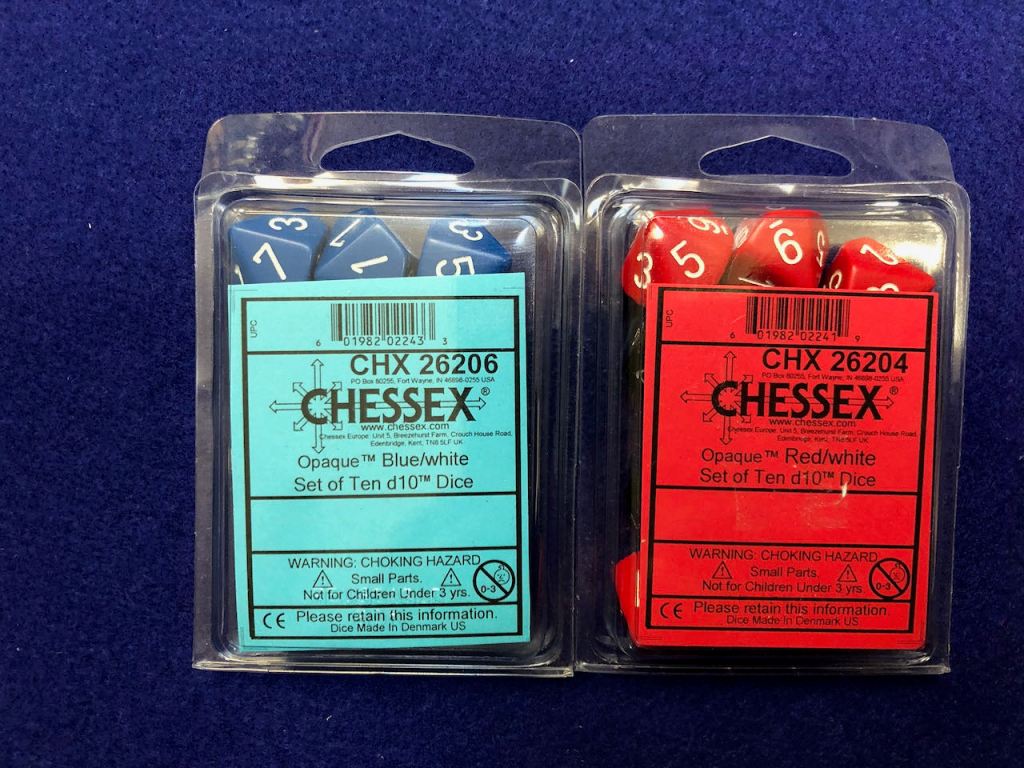 12mm (left) and 16mm (right) for lots of wargaming use (Photo by RMN)I actually bought these to replace the black and white dice in Blue Water Navy (Compass Games) because I wanted the “proper” Blue for NATO and Red for the Warsaw Pact (Photo by RMN)More Chessex sets – Occasionally called upon for various roleplaying games or wargames (Photo by RMN)Hey, wait a moment…haven’t I seen these before? I must really like that color…. (Photo by RMN)
