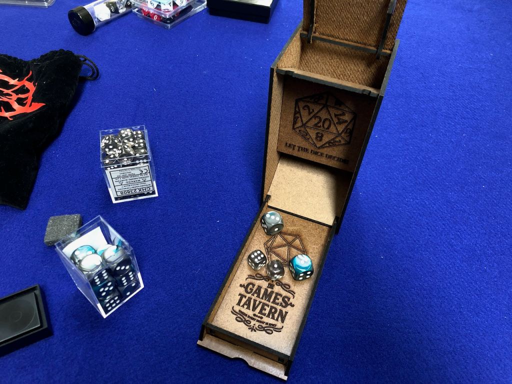 Dice Tower – Mine’s a bit small (but perfect for 12mm or 16mm). Unfortunately the Games Tavern is no longer in business (Photo by RMN)