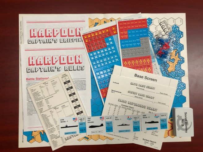 By the mid-1990’s the Soviet Union had fallen and was already a fading memory. I vaguely remember browsing through a game store (Compleat Strategist in Virginia?) and looking at Harpoon Captain’s Edition: Exciting Modern Naval Battle Game. To be honest, a wargame about the Cold War Gone Hot in the North Atlantic at that time seemed so quaint. Furthermore, the game didn’t even look like Harpoon. I mean, the box art looked like the Harpoon series but when the cover also says “Easy to Learn – Fun to Play” and “Start Playing in 30 Minutes,” well, that was just NOT the real Harpoon I wanted to play!