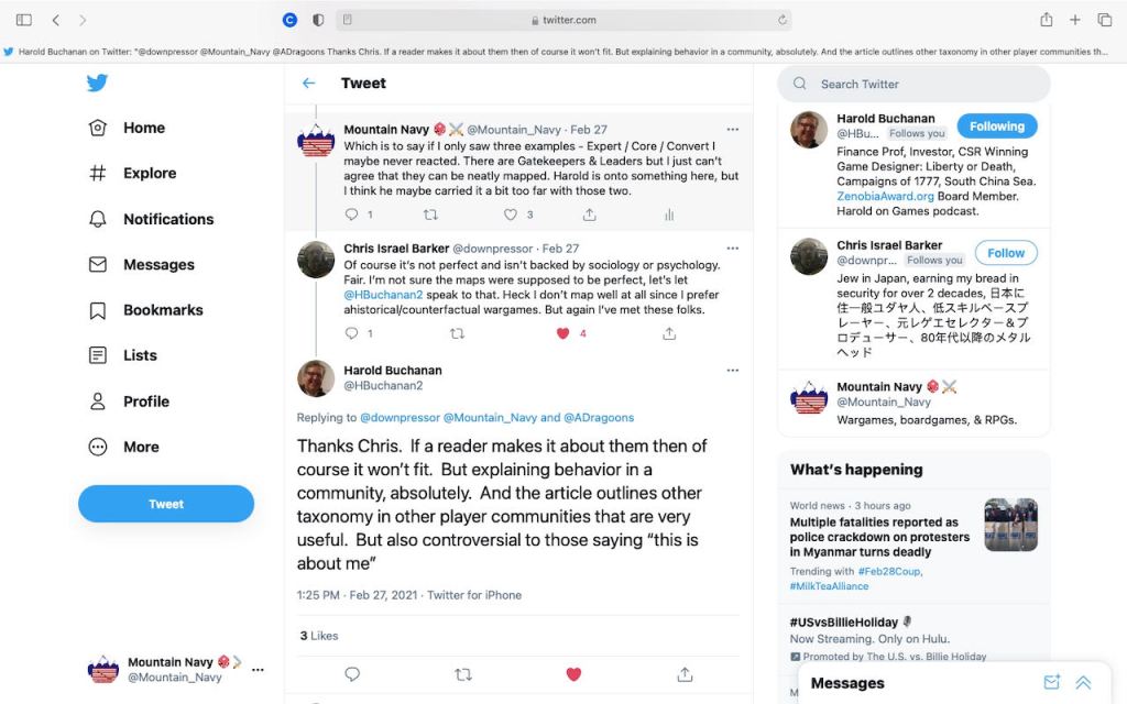Harold Buchanan wrote a long response on FaceBook to my comments on his taxonomy. You can find a link to it in The Armchair Dragoons forum. There was also this recent exchange on Twitter: