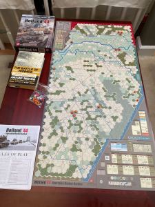 Holland ’44 was published in 2017. The game uses a set of core mechanics that traces all the way back to Ardennes ’44: The Battle of the Bulge from GMT Games back in 2003. I point out these dates because I have somehow missed this great system for nearly 20 years. Actually, I didn’t miss it as much as I ignored it. I admit that I have been more a tactical wargamer than an operational-level aficionado. Thus, series games like Conflict of Heroes (Academy Games) or Panzer (GMT Games) or Wing Leader (GMT Games) or Command at Sea (Admiralty Trilogy Group) occupy both my World War II shelves and gaming time. Late in 2019 (and seriously in 2020) I discovered the joys of Multi-Man Publishing’s Standard Combat Series (SCS). Now, with Simonitich’s “‘ZOC Bond” series I have found another operational-level war engine that is easy to learn and I like to play. The fact that Holland ’44 is built on a proven war engine is a great draw for me. If there is one part of my wargaming personality that has become very clear to me in the past year it is that I enjoy proven war engines more than learning yet another “new” system.