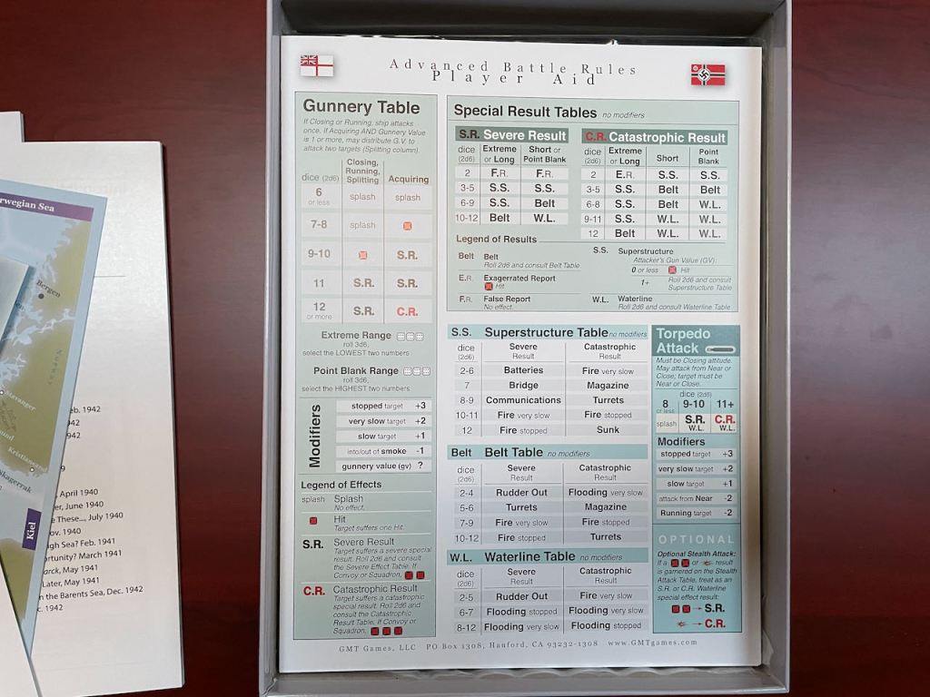 In the Design Notes to Atlantic Chase, Jerry White relates that when he first approached GMT with the game, the question most often asked was, “Is this a U-Boat game?” His response, “This is a Sink the Bismarck game!”, only earned him the response, “So, there’s gonna be U-Boats?” Which is sad in a way because once Jerry said “Sink the Bismarck” then people should have known this is a game of surface combatants searching the wide open oceans for one another. U-Boats had a part, much like carrier and land-based air did, but at it’s heart Atlantic Chase, like the entire Sink the Bismarck event, is a chase. That chase is the focus of the game system; it’s telling that in the 64-page Rule Book the Battle rules take only eight (8) pages.