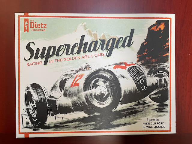 This week I have been racing around Circuit de Rocky with some casual solo games of Supercharged: Racing in the Golden Age of Cars (Mike Clifford & Mike Siggins, Dietz Foundation, 2021). Supercharged is an easy to learn, great to solo if you need to, card-driven auto racing game. Movement mechanics are dead-simple; stay on the Racing Line, Overtake when able, Spin Out if you are Blocked. Pit Stops are a flip of a card. Slipstreaming is very helpful—watch how you stack your cars to make slipstreaming opportunities count! The Action Cards in Supercharged also create some great narratives like in the second race where the first Japanese car retired at the start (broken axle – obviously popped the clutch, right?) and then the second retired after getting stuck after a spin out in the first lap.