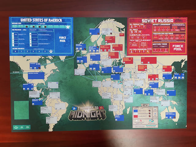 2 Minutes to Midnight is a playable simulation (or historical game if you prefer) of the Cold War from the end of World War Two to the early 90’s when historically the Soviet Union dissolved.