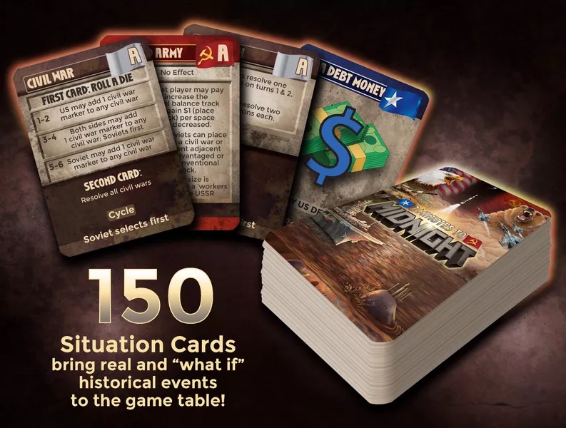 The Cold War was fought out over a relatively long time—nearly 50 years. Getting to the end of a game of 2 Minutes to Midnight is simultaneously exhausting (so much has happened) yet very fulfilling. The best satisfaction comes from achieving a peaceful world. Even if that does not happen and one side has collapsed in unrest, or lives crushed under a jack-heeled boot, the story you create with the cards in 2 Minutes to Midnight makes the entire Cold War come alive on your table. Which is exactly why 2 Minutes to Midnight deserves to be a gaming collection—it both teaches and tells the story of the Cold War in a highly interactive manner and shows that what happened maybe was destined to happen…or maybe it was just luck (or misfortune) that things turned out the way they did.