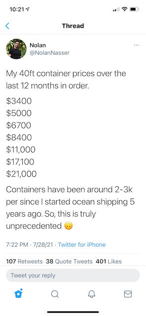There are other clues out there. Nolan (@NolanNasser) of Deep Water Games tweeted about the dramatic increase in shipping container prices.
