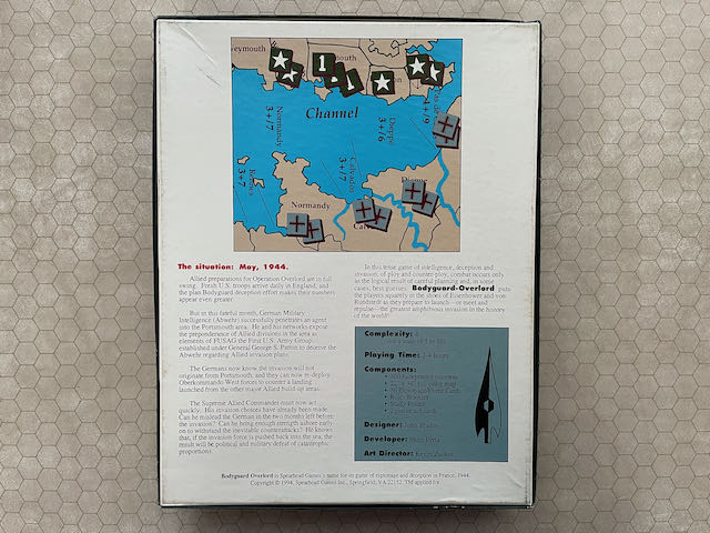 In the course of a recent Twitter exchange with Hethwill Wargames, I mentioned John Prados’ Bodyguard-Overlord (Spearhead Games, 1994) as a good wargame of intelligence activities, even it I feel it is maligned. Fellow Twitter wargamer Nicola asked me to expand on my thought, which I am always happy to do for a wargame…even if it isn’t. Confused? Read on…