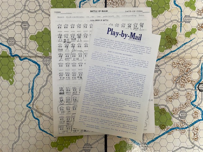 My copy of The Battle of the Bulge also includes rules for play-by-mail (PBM). PBM requires one to record unit positions and mail them to your opponent. The part I find most interesting is how to resolve a random die roll: