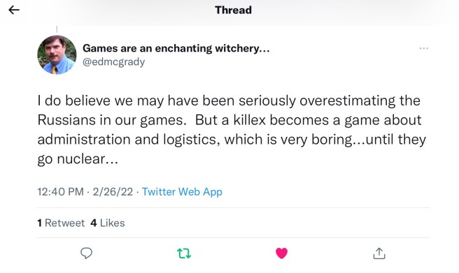 The ongoing Russian invasion of the Ukraine is certainly making wargamers—professional and hobby—rethink some fundamental assumptions of the Russian threat. This reassessment is also spilling over into game design.