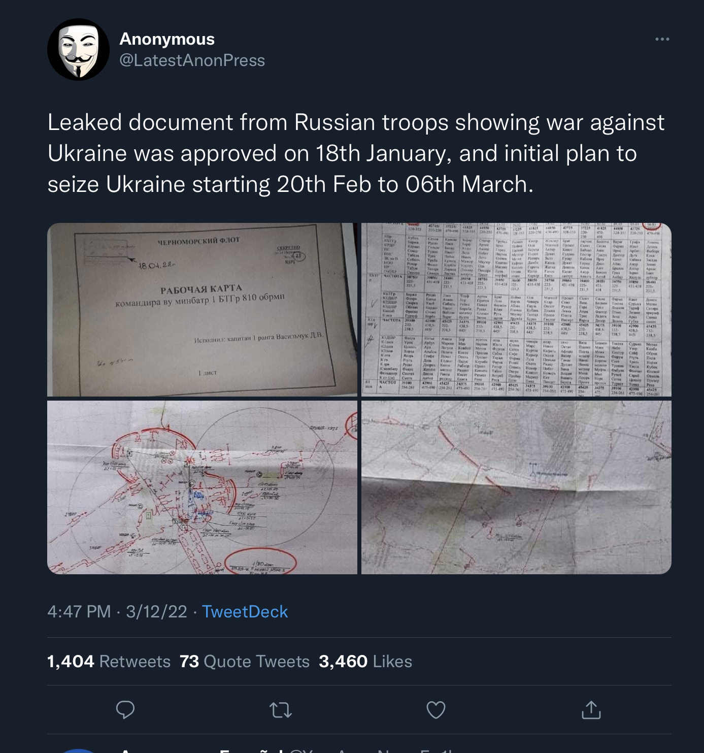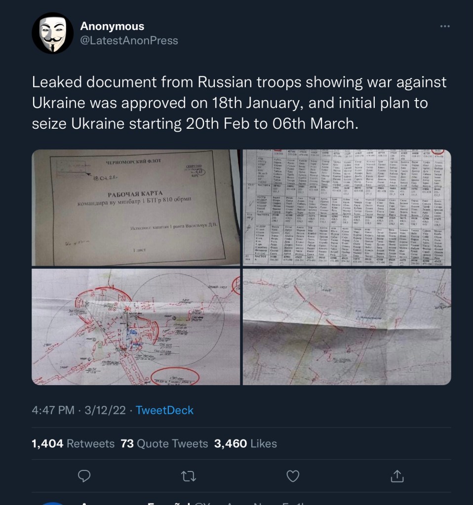 Not planned for…that’s hard to believe. It’s not even true if Anonymous is to be believed and the Russian military had at least 30 days to plan for an invasion.