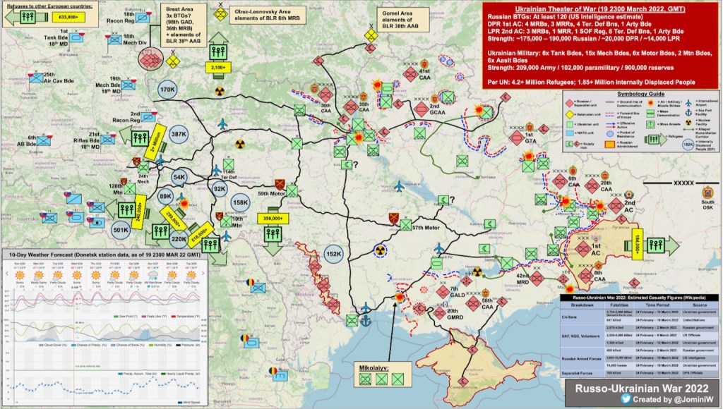 If you have served in the military you very likely have heard of the Common Operating Picture, or COP. Twitter user Jomini of the West (@JominiW) produces a daily map that is the closest to a COP I have seen out there. From a pure conflict wargamer perspective this one might be the most “familiar” given the force laydowns depicted.