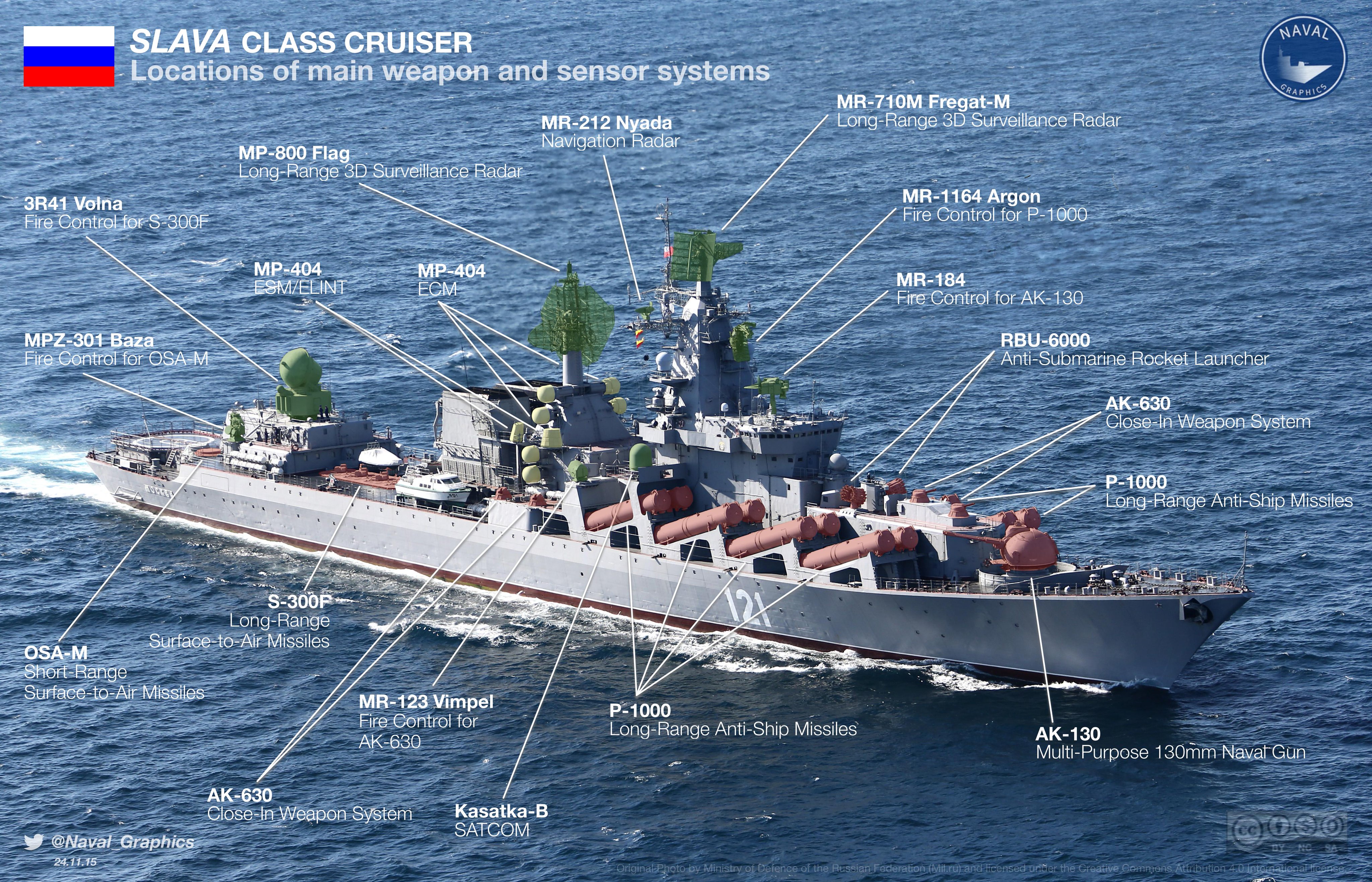 While US Navy ships (especially AEGIS ships) have a radar capable of horizon-to-space the Russian Navy doesn’t (especially in this older 1980’s design with limited upgrades). The 3d air search radar likely has problems down low, and the surface-search radars probably are not optimized for a fast surface inbound.