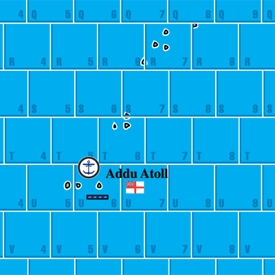 In our game Eastern Fleet, we gave Addu Atoll no special secret abilities: The Japanese player knows the British have a base there. The game system doesn’t lend itself to “secret” bases, since the opposing player is going to figure out that a task force probably isn’t going to halt in mid-ocean for several turns. Optional rules make it harder to detect, but unlike Chuichi Nagumo the Axis player already knows it’s there and therefore knows to look for it.
