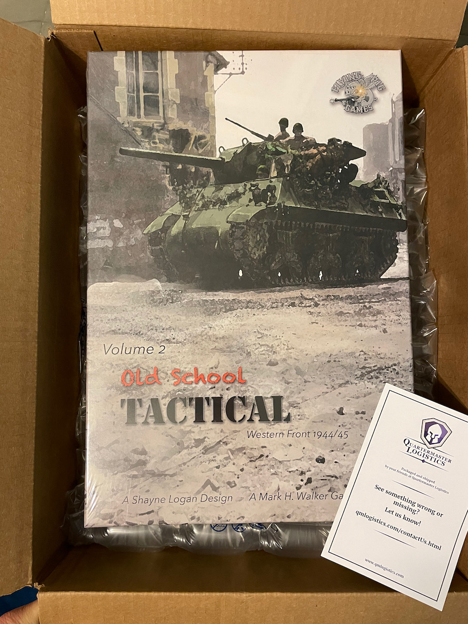 Speaking of shelves, I’m going to need to hunt for some new shelf space to fit some of these boxes. While most are “standard” boxes at 9.25″x11.75″x1.5″ depth, Wings of the Motherland is a 3″ deep box. World at War ’85: Storming the Gap is slightly oversized 9.75″x13.5″x3″ deep box, but those two Old School Tactical games come in monster 11″x16″x2.5″ deep boxes. They’re heavy too!
