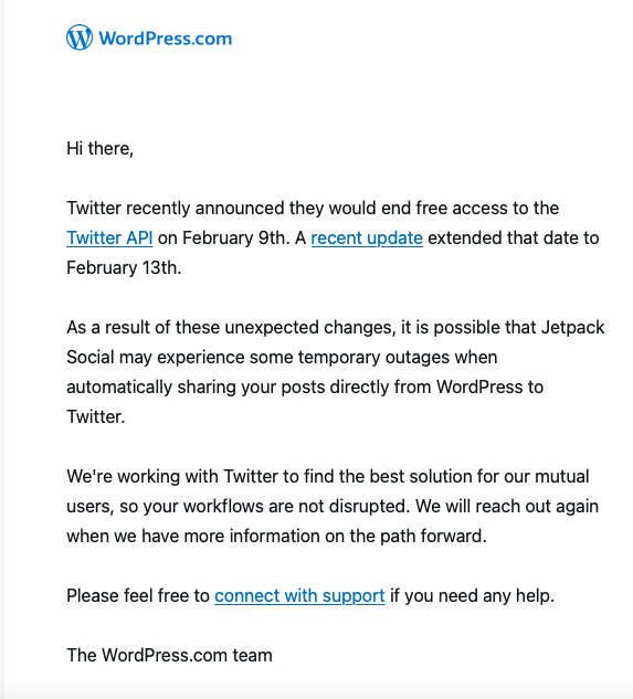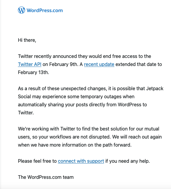In my Blog Report 23-1 I mentioned that I was looking into how to automatically post blog entries from my WordPress blog here to Mastodon but gave up upon discovering I could do so if I upgraded to a plan 5x more expensive! Well, it looks like getting my posts to Twitter, which is a free widget in WordPress Jetpack, may not be so easy in the future.