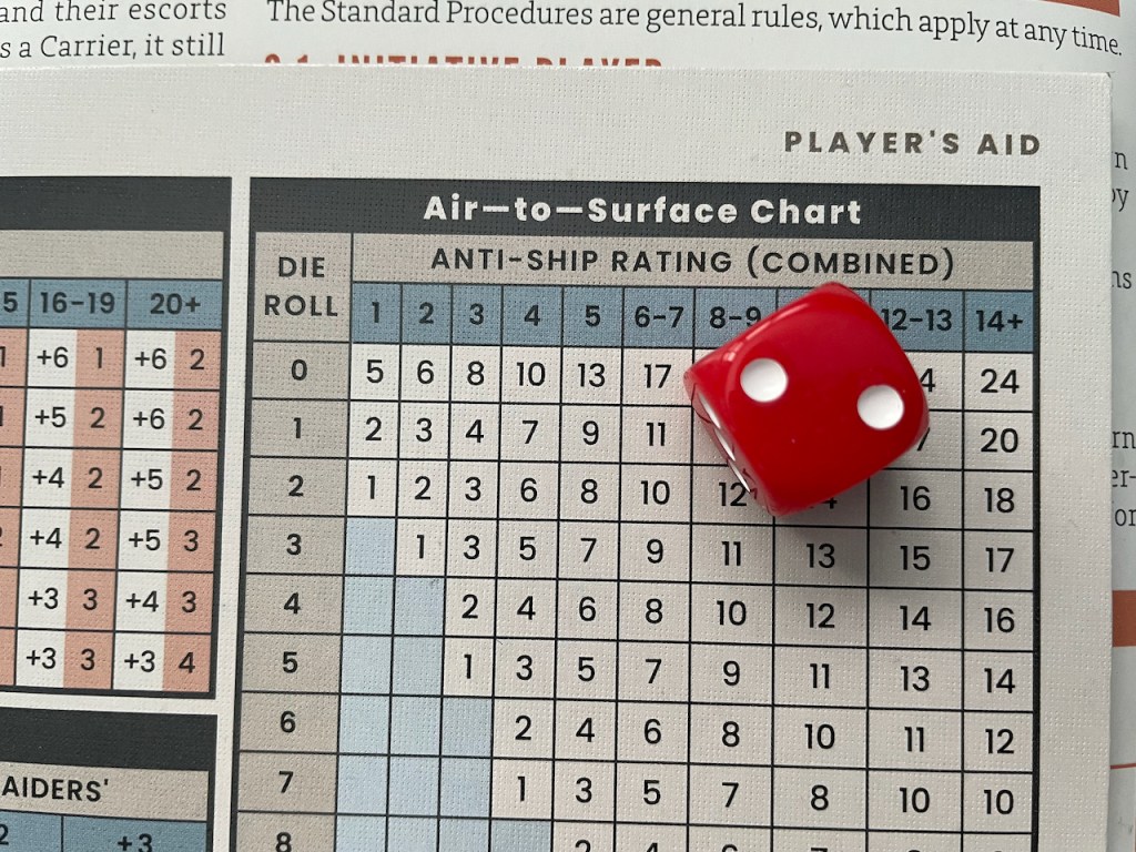 There is still no anti-air fire from the Americans. The Kate rolls 1d6 and gets a 1 with a -2 die roll modifier—results in 17 hits!