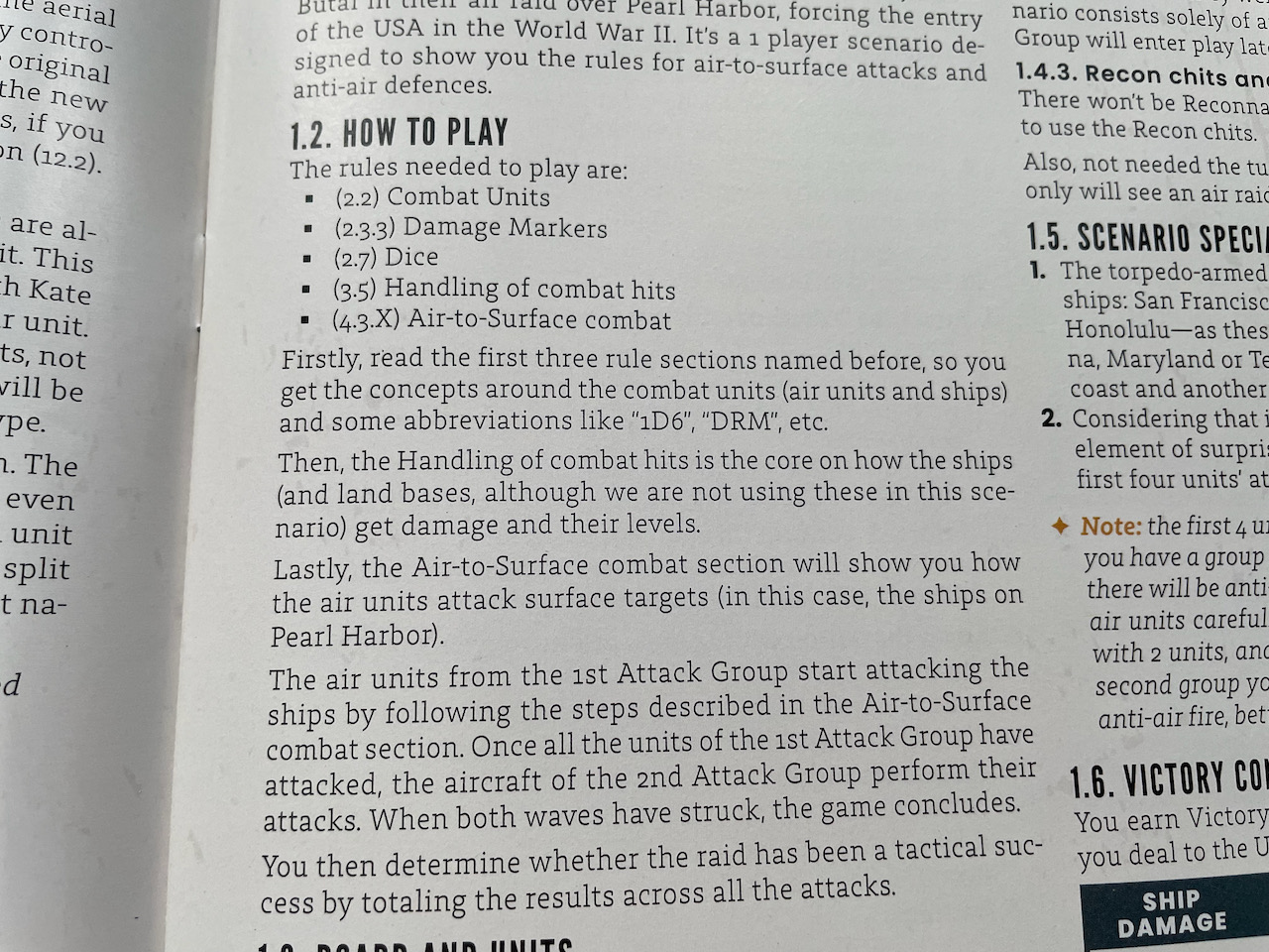 It took me a little time, but I finally got the first scenario for Task Force: Carrier Battles in the Pacific from Vuca Simulations (2023) to the gaming table. The first four scenarios in Task Force are tutorials to educate new players on the game. “Scenario 1. Attack on Pearl Harbor (December 8, 1941)” covers the two-wave air attack.