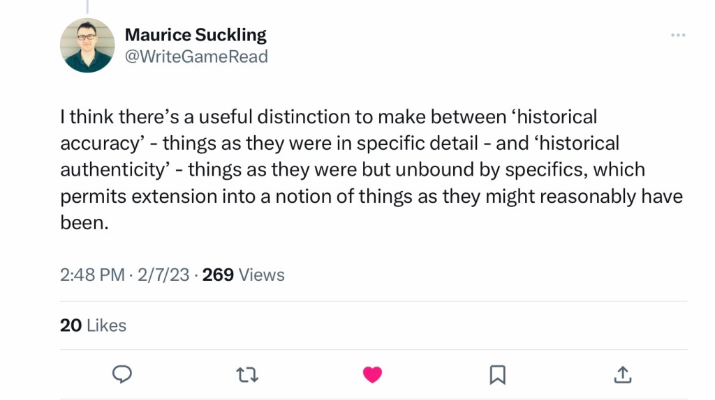 Thanks to a comment by Maurice Suckling (@WriteGameRead on Twitter) I found a term to describe this condition: “Historical Authenticity.” Rather than striving to be a “historically accurate” wargame, Task Force uses abstracts elements to create a strong feeling of “historical authenticity.”
