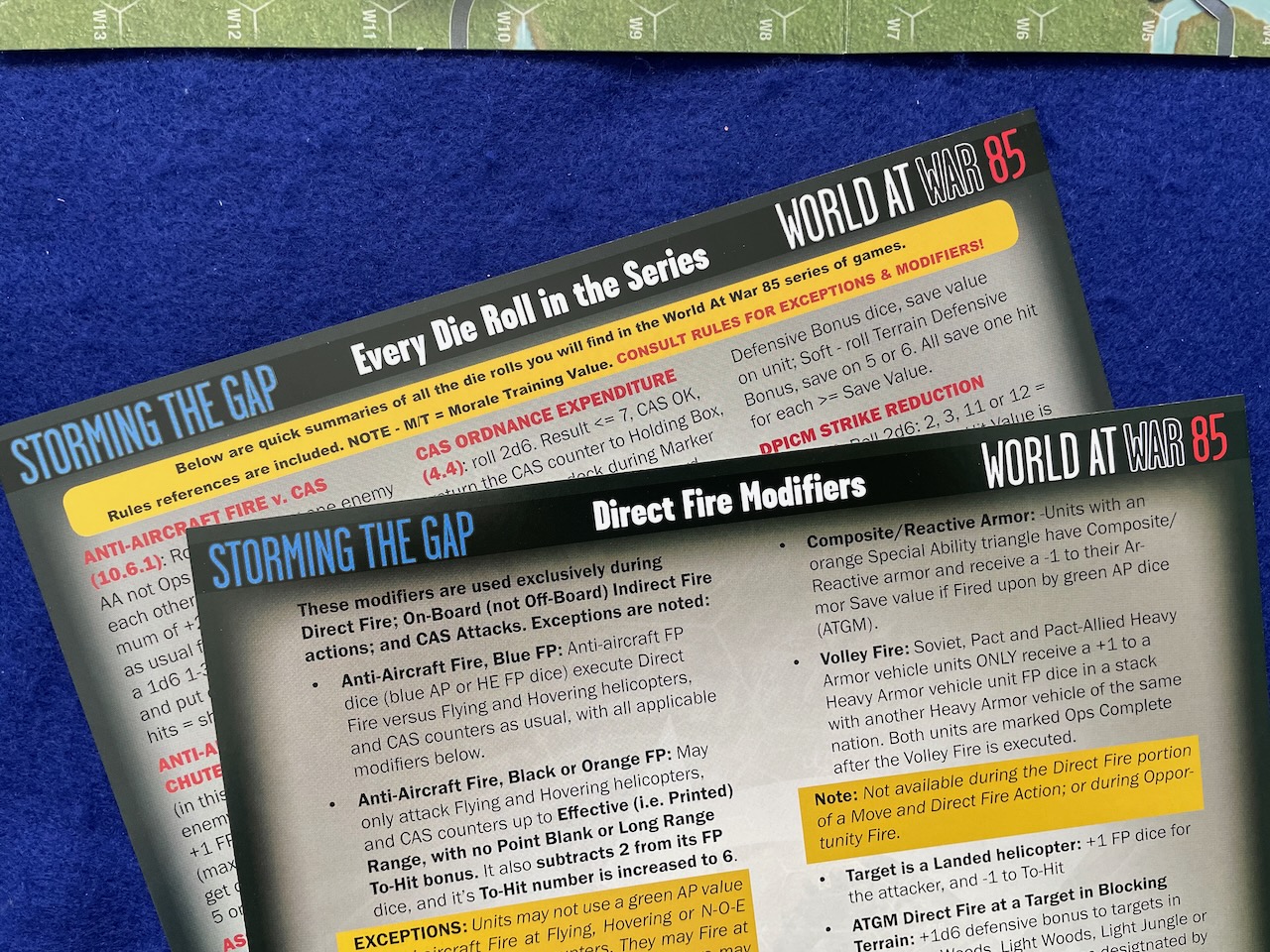 It is worth stating the obvious that World at War 85 depicts a hypothetical 1985 conflict in Europe that thankfully didn’t happen. While Storming the Gap looks back with the benefit of almost 40 years of military study hindsight (and declassification of sources) there is no such thing as an “accurate” depiction of the history, just another wargame of assumptions. We must remember that the battles depicted never actually happened meaning empirical data—useful for baselining “reality”—is absent in the design.