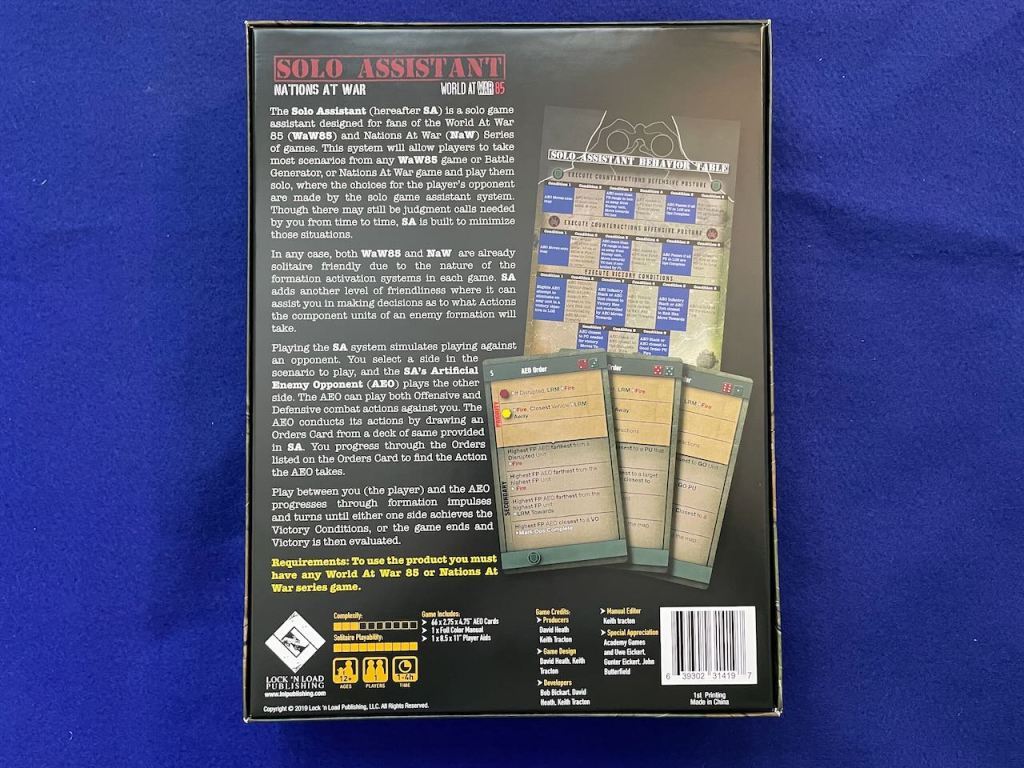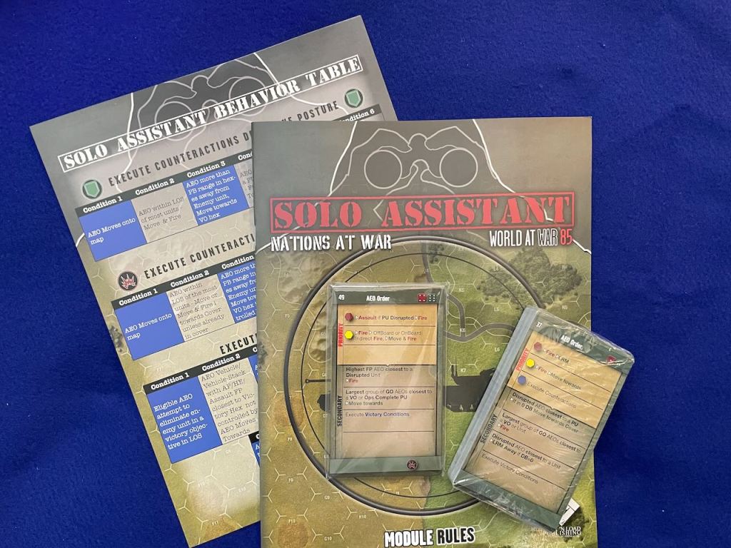Lock ‘n Load Publishing is having a Blitzkrieg Sale right now and I picked up their Solo Assistant – Nations at War / World at War 85 (2019). This module is designed to work with either the World War II Nations at War or Cold War World at War 85 series games. My copy arrived at the same time the Armchair Dragoons “Mentioned in Dispatches” podcast episode “Tabletop ‘AI’ & Lock ‘n Load Publishing” dropped so I was able to listen to co-designer David Heath describe the module in words that echoed those found in the Developer Notes: