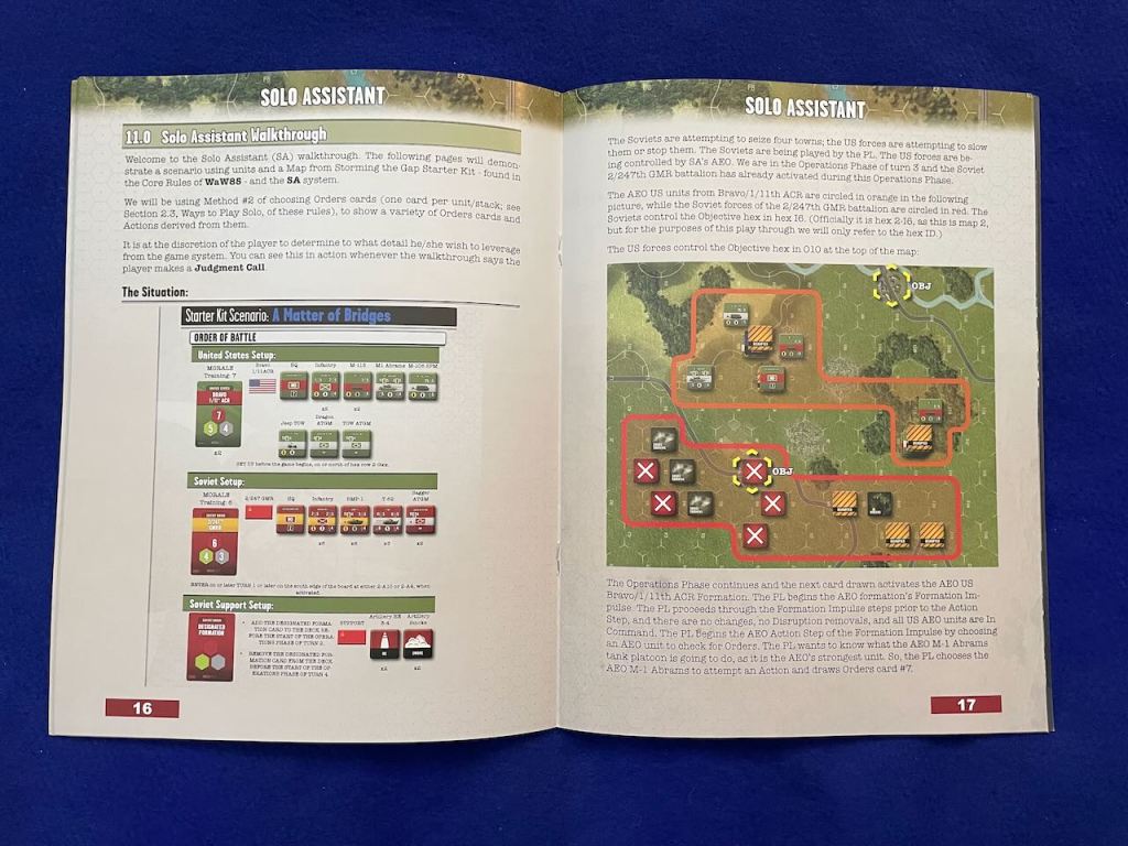 I’m in the process of setting up the first scenario of World at War 85: Storming the Gap (2019). As I previously used the Conflict of Heroes – Eastern Front: Solo Expansion (Academy Games, 2015) I don’t expect too steep a learning curve. The rule book for the Solo Assistant is well illustrated and easy to follow.