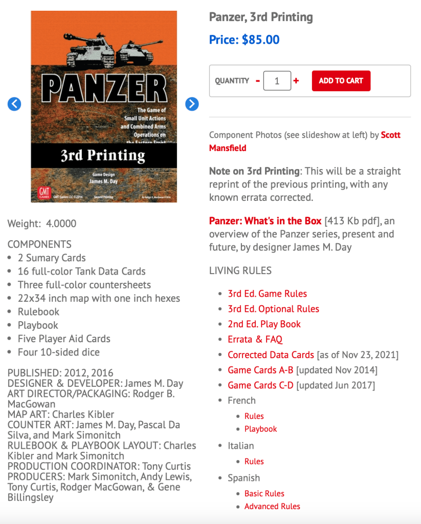 My first wargame was Panzer: A Tactical Game of Armored Combat on the Eastern Front, 1941-1945 designed by Jim Day for Yaquinto Publishing in 1979. I loved the game so much that I picked up the other two games in the original Panzer series, ’88’: A Tactical Game of Armored Combat on the North African Front, 1941-1943 (1980) and Armor: A Tactical Game of Armored Combat in Western Europe, 1944-1945 (1980). Through the years I acquired more World War 2 tactical ground combat designs. They include the entire second edition of the Panzer series from GMT Games that started with Panzer: The Game of Small Unit Actions and Combined Arms Operations on the Eastern Front 1943-45 (2012, 2016) as well as the Academy Games Conflict of Heroes series, in particular Conflict of Heroes: Storms of Steel – Kursk 1943 (Third Edition) (2019). All of which is to say that I really don’t need another World War II tactical battle game.