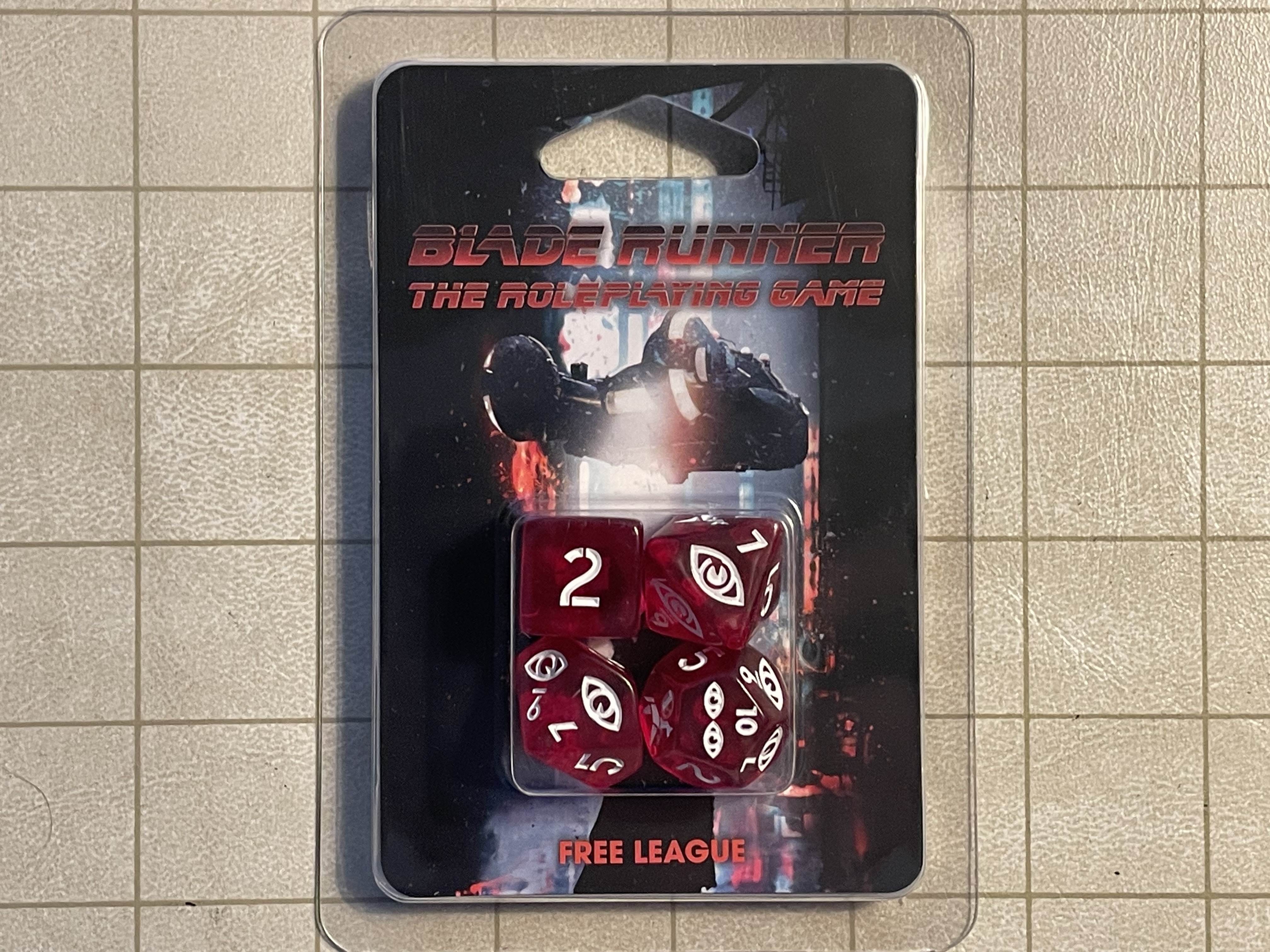 I wrote before how I don’t feel the need to buy the specialty dice for Blade Runner: The Roleplaying Game from Free League Publishing. That is, until I saw a set in the store.