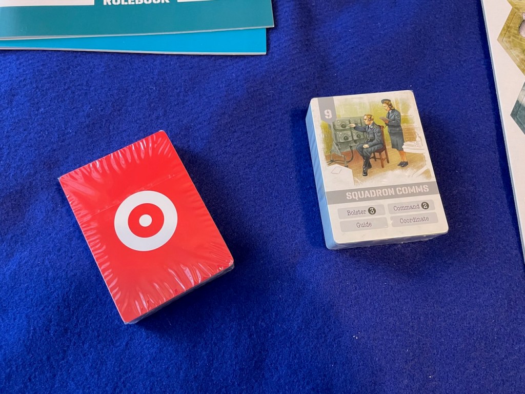 Much to my amusement, I have seen some “commentary” on BGG regarding the choice of the card back color scheme for the RAF cards. Apparently, some feel it is too Target Corporation-like. Personally, the color scheme makes no difference to me as the cards are usually displayed face-up and only placed face down when they are in your Draw Pile.