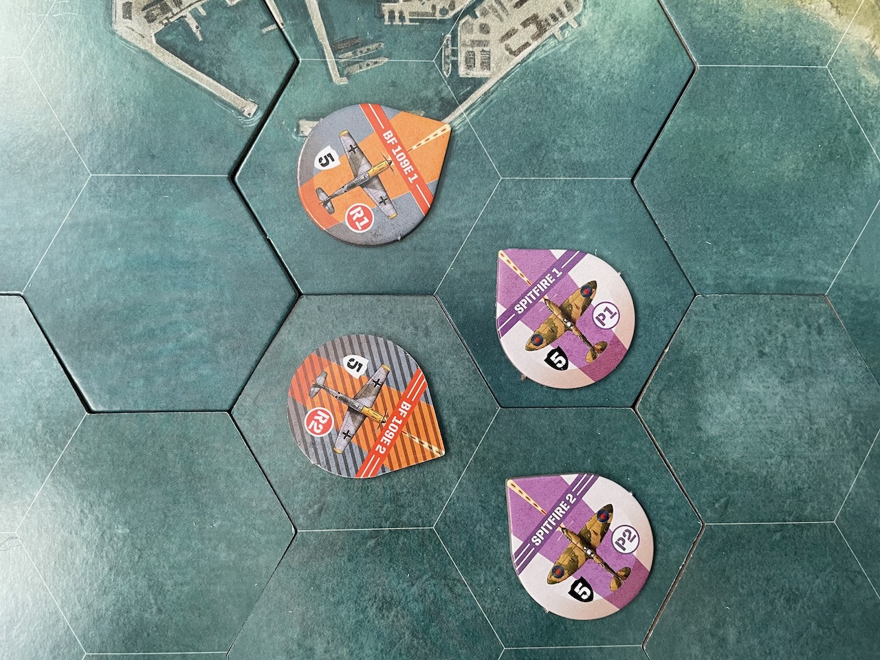 Gameplay in Undaunted: Battle of Britain is quick and breezy. I found the rules very tightly written, as one would expect given this is the fourth game in the series. The terminology and rules changes to hexes from square tiles and to air combat from ground were well explained. Even the new communications rules (replacing command in previous games) were easy to understand—especially if you read the rulebook! I was also amused by the choice of some words in Undaunted: Battle of Britain. In this family-friendly game aircraft are not “shot down” but instead “neutralized.”
