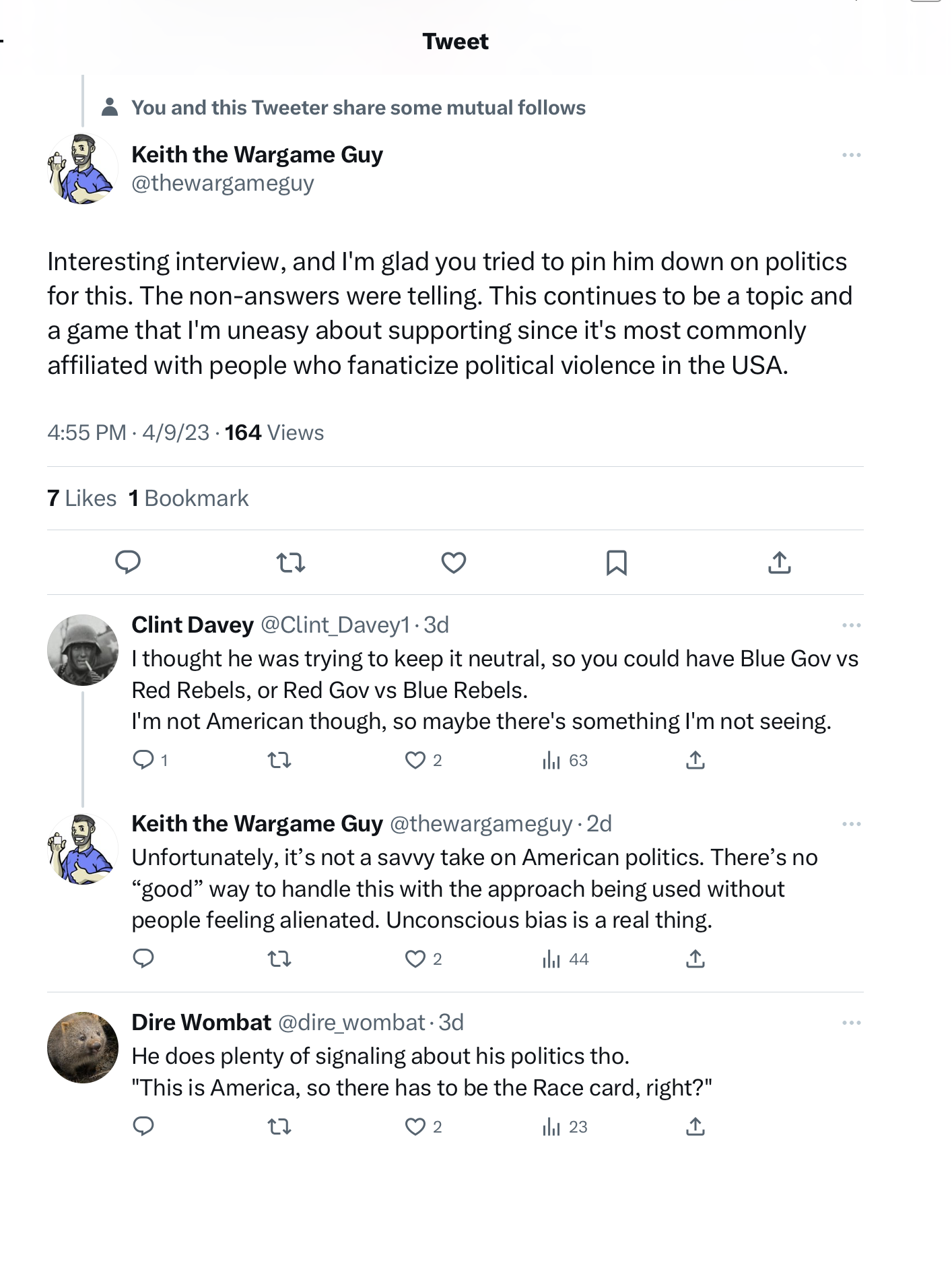 Those answers didn’t sit well with some who called out the designer and game as one aimed at those “who fantasize political violence in the USA” and asserted the game is an example of unconscious bias.