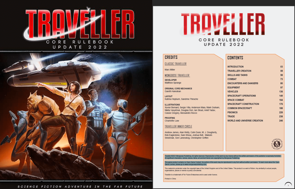 Mongoose Traveller Core Rulebook Update 2022, p. 1