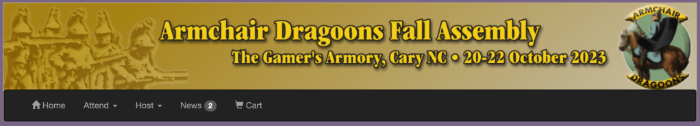 This fall also includes my planned attendance at the Armchair Dragoons Fall Assembly in Cary, NC from 20-22 October. For all the time I have written for Brant and “appeared” on the Mentioned in Dispatches podcast, I have never met the Regimental Commander in person. I look to rectify that condition over a weekend of friendly gaming!