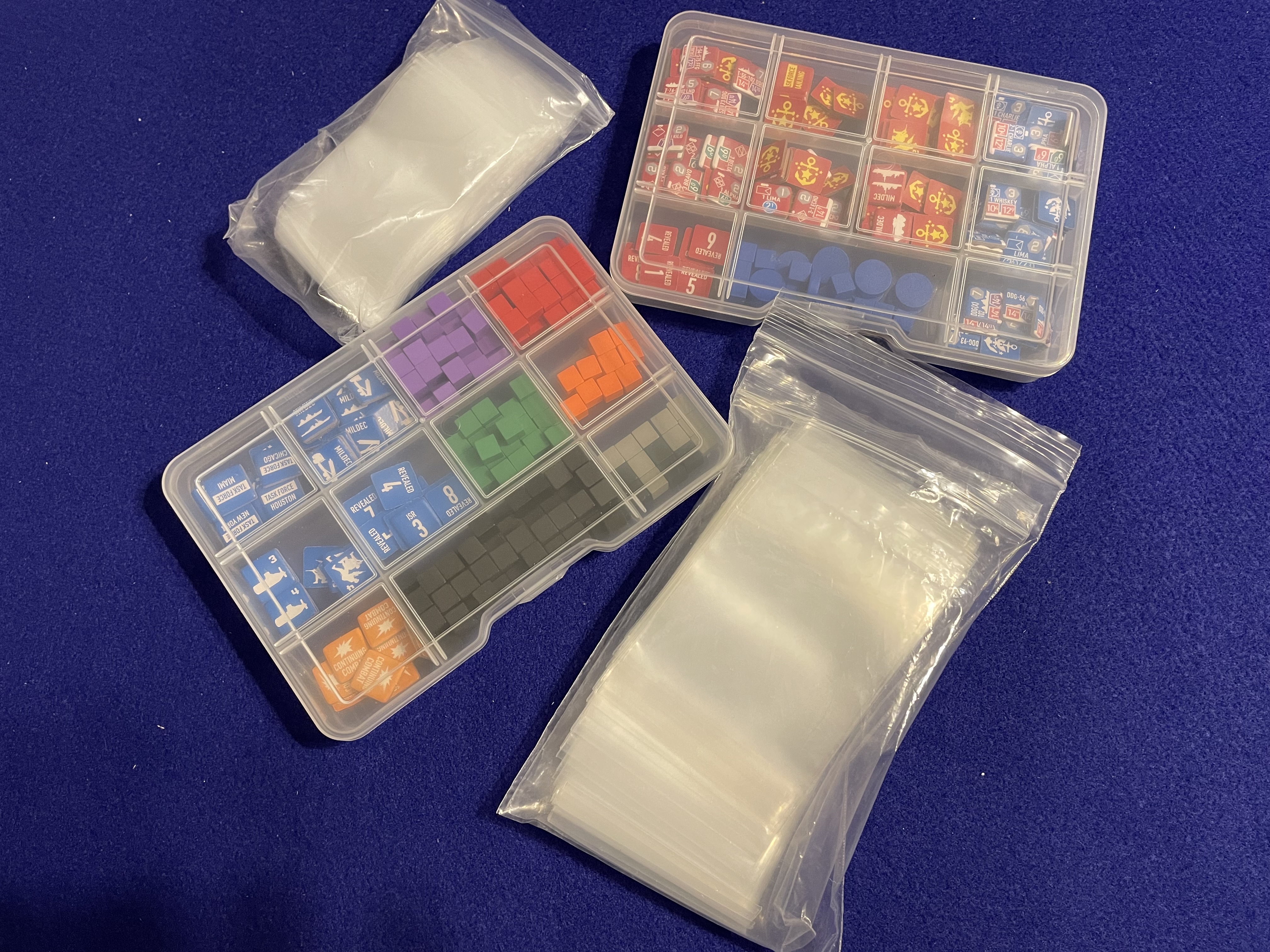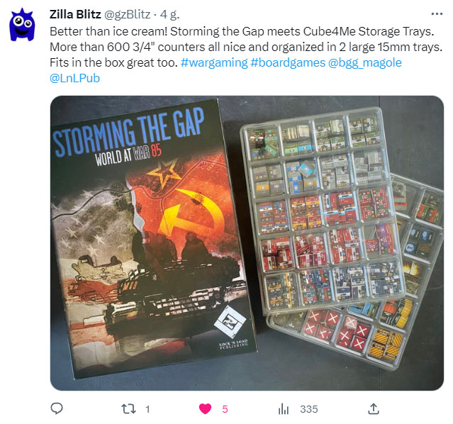 As much as I like my baggies and small toolboxes the Cube4Me trays are phenomenal. The clear lids make seeing counters easy and the compartments are not so small that my Grognard fingers can’t dig counters out.