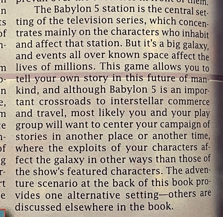 I absolutely loved Babylon 5 on TV. What some may not know is that B5 was one of the first TV series to use “season arcs” for storytelling. Arcs are great for RPG campaigns, but at the time it was also challenging to see how arcs on TV could translate onto the tabletop.
