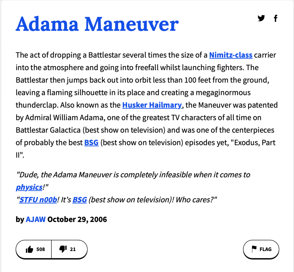 One of my favorite moments in sci-fi television is the famous “Adama Maneuver” from the episode “Exodus – Part II” in Season 3 of the reimagined Battlestar Galactica series that first aired in October 2006.