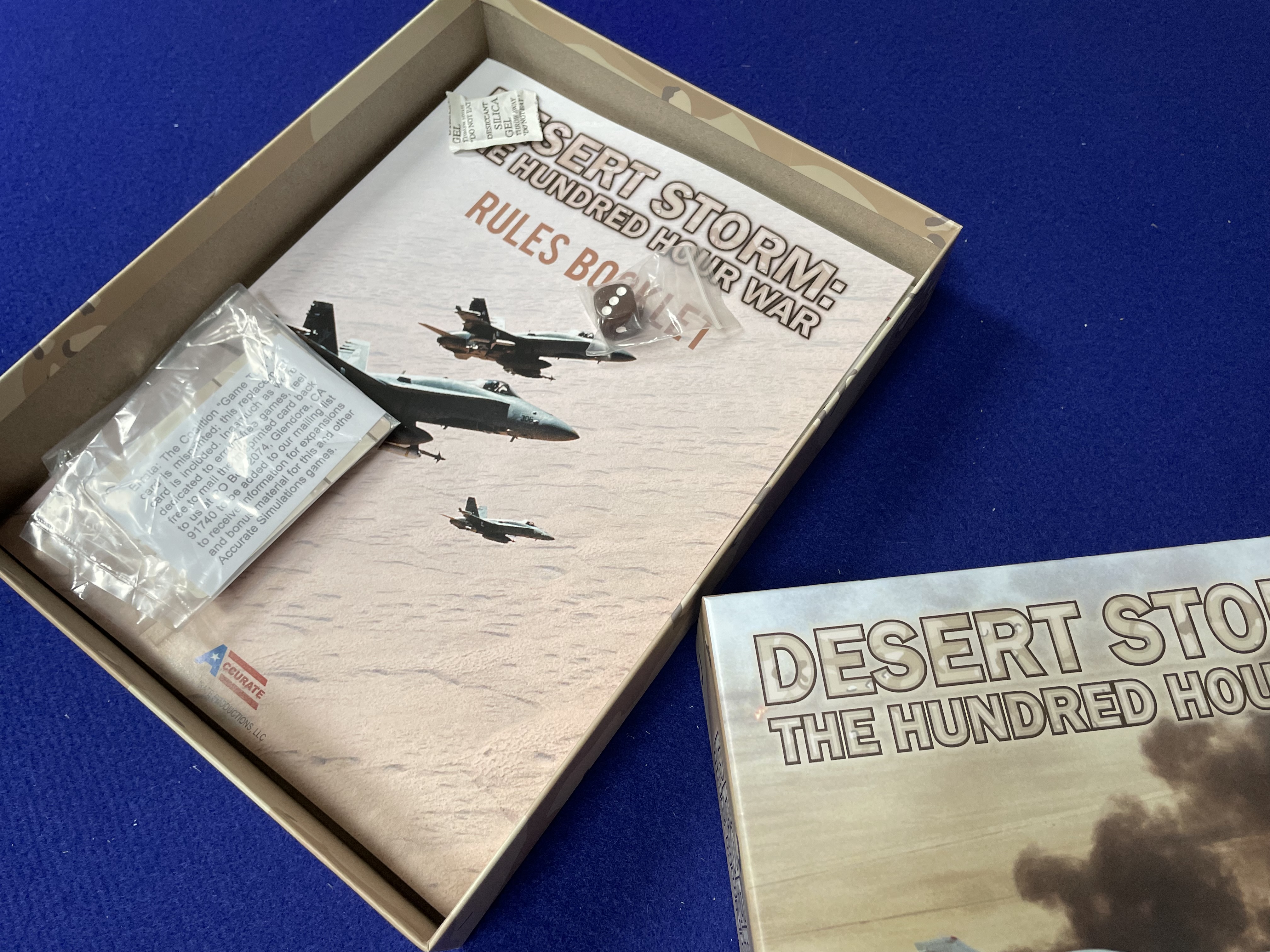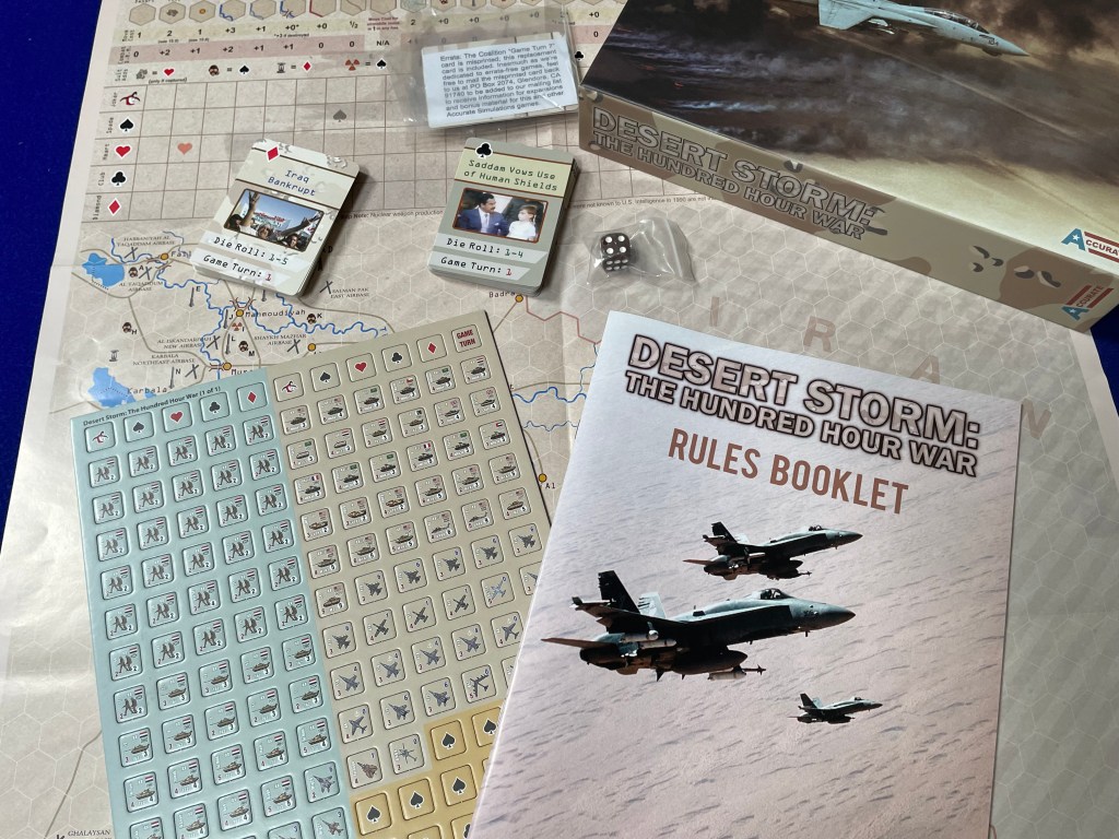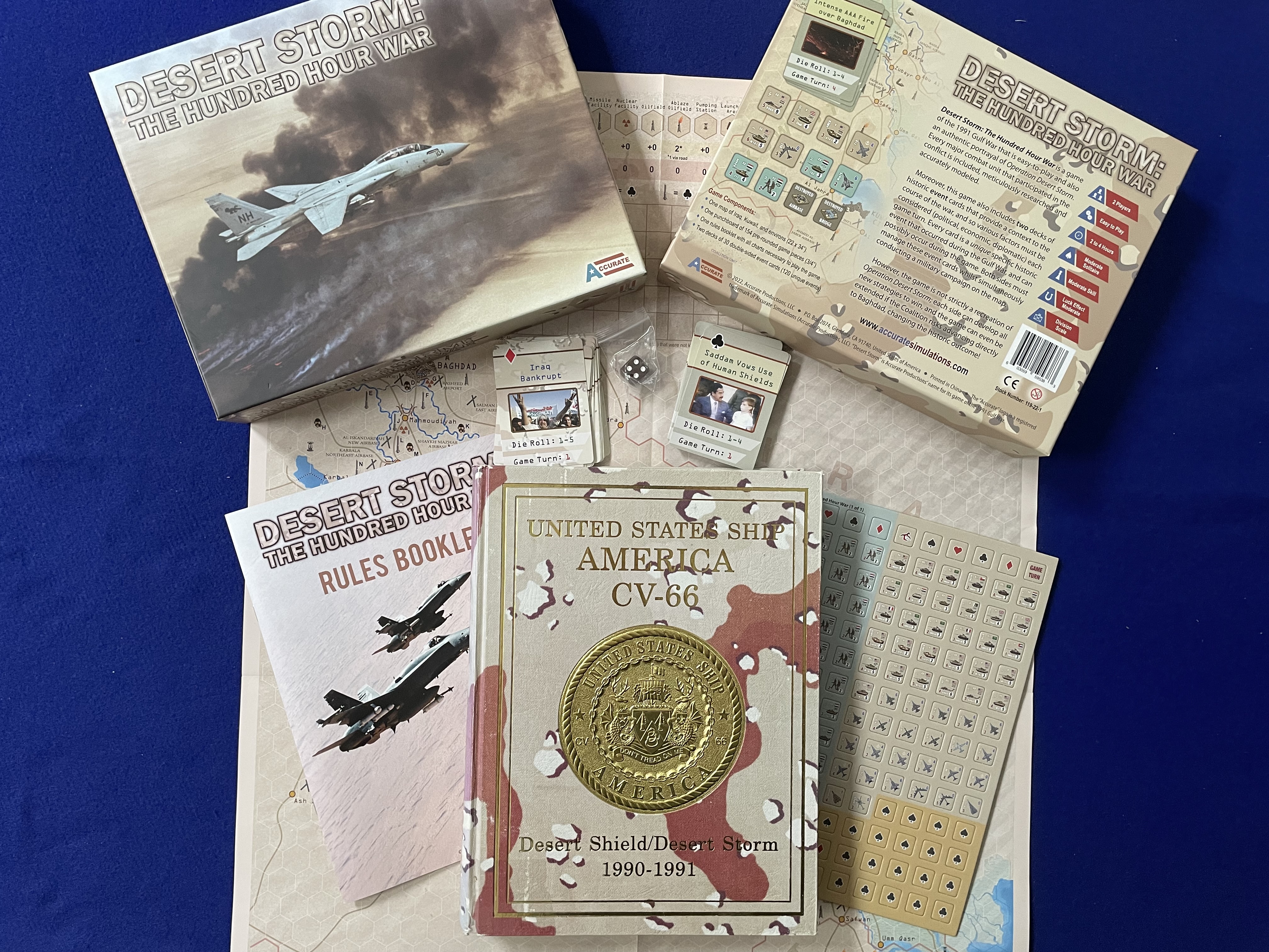 As a Grognard who has played wargames for over 40 years now, including many “Cold War Gone Hot” and other “modern” topic wargames, one might think I have played more than a few games on Operation DESERT STORM, the 1991 war with Iraq. Alas, you would be wrong. Wrong at least until the arrival of Desert Storm: The Hundred Hour War by designer Eric Harvey from Accurate Simulations. While it has taken 32 years for me to play a DESERT STORM wargame it is good that I waited. Desert Storm: The Hundred Hour War is an easy to learn, highly playable “traditional” hex & counter wargame with an interesting Campaign Card Draw game mechanism added to emphasize that this war was not just about military success—or failure—on the battlefield. While Desert Storm: The Hundred Hour War is easy to learn and somewhat fun to play, I hesitate to call it a simulation of the war as the viewpoint of the game is relatively narrow and the game mechanisms used don’t exactly convey the theme in a powerful manner.