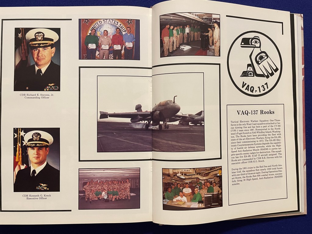 On August 2, 1990 I was home on leave having just finished intelligence school. I was supposed to be home for two weeks but it had only been a few days when the news of the invasion flashed across the TV screens. By August 4, I arrived at my new command, Tactical Electronic Warfare Squadron (VAQ) 137 ‘Rooks’, flying the EA-6B Prowler assigned to Carrier Airwing One embarked aboard the aircraft carrier USS America (CV-66). We transited the Suez Canal and entered the Red Sea just two days before the first night of DESERT STORM kicked off on January 17, 1991.