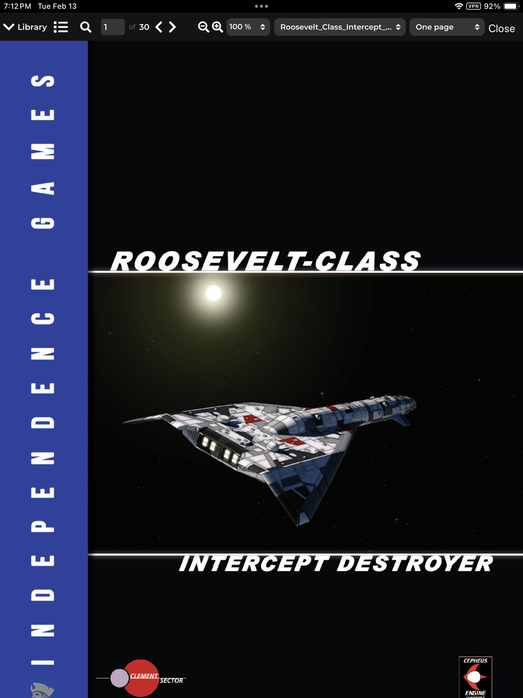 I admit it, I absolutely love the Traveller RPG and especially the ships. I can’t get enough of different ships. One of the latest offerings I acquired is the Roosevelt-class Intercept Destroyer by Michael Johnson for Independence Games.