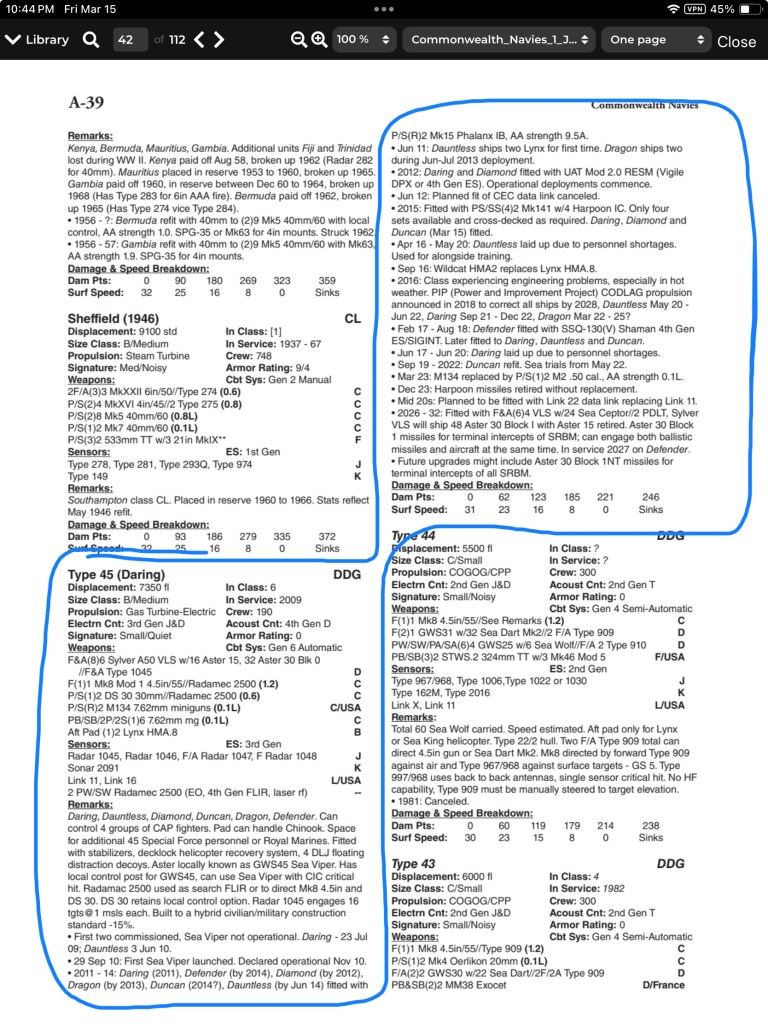 - Commonwealth Navies is 112 digital pages and includes the various ships, weapons, and electronics used (Annex A Ships, C Naval Guns, D Missiles, E ASW Weapons, F Torpedoes, G Mines, J Radars, K Sonars, L Tactical Data Links, and R Carrier Air Wing Assignments).