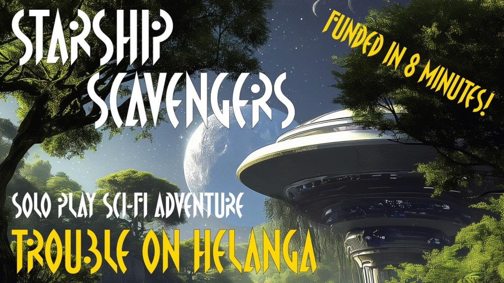 Starship Scavengers – Trouble on Helanga from Grinning Frog via Kickstarter. Projected Jun 2024. STATUS – TRACKING. Makers of real nice solo adventures.