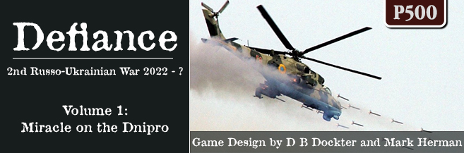 Defiance: 2nd Russo-Ukrainian War 2022-? from GMT Games via P500. STATUS – QUICKLY PROGRESSING. Per May 2024 GMT Games update status is, “Ready for Art: Pending Artist Assignment.”