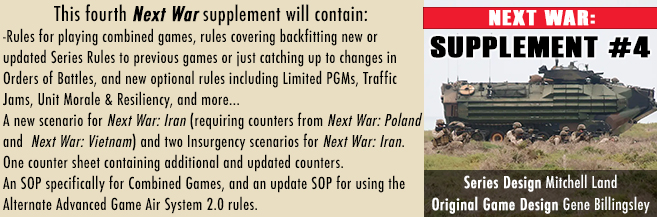 Next War: Series Supplement #4 from GMT Games via P500. STATUS – “In The Art Department (Ready for Final Art/Proofing in early 2025).” Another long wait.