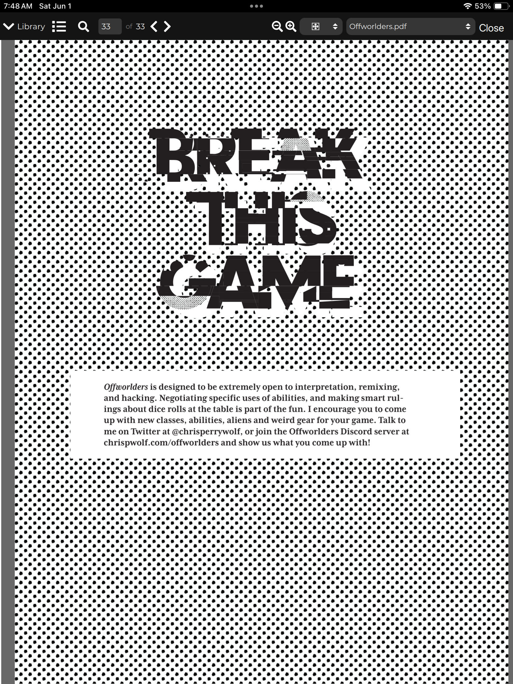 TTRPG Roll 24-24 ~ Conversational one – Offworlders (Chris Wolf, 2018)