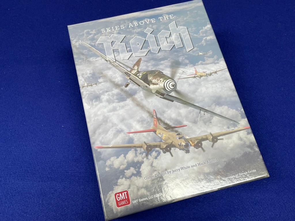 When the first edition of Skies Above the Reich by Jerry White and Mark Aasted from GMT Games was released in 2018 I passed on it in great part because I was not interesting in solo-playing wargames. Six years on the RockyMountainNavy Boys—my primary gaming buddies—are growing up and (mostly) out of the house. Thus, I have taken to looking at more solo games to satisfy my wargaming itch. Which means I am looking at Skies Above the Reich, now in a second printing, for my personal first time.