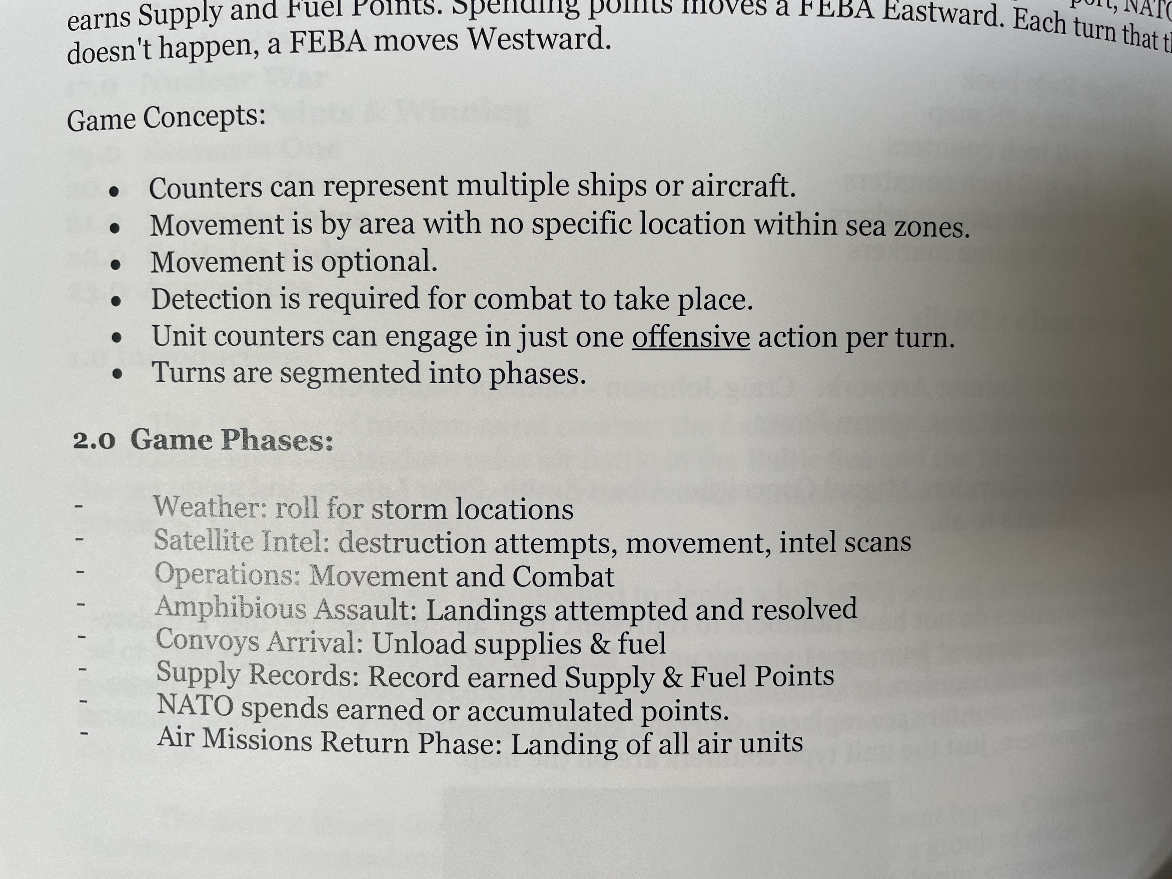 Each turn in Close the Atlantic: World War Three is divided into eight phases. As shown on page 4 of the rule book the eight phases are: